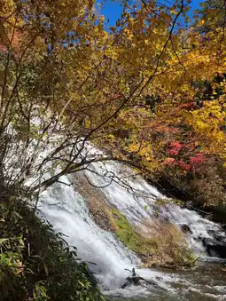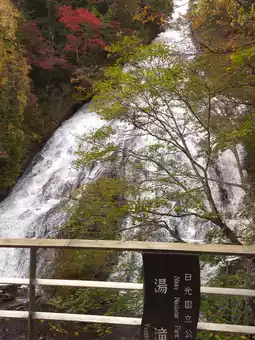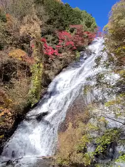 Yudaki Falls is one of the most beautiful spots to view autumn foliage in Nikko. Located at the end of Lake Yunoko, the waterfall stands approximately 70 meters tall, cascading amidst a forest that transforms into vibrant shades of red, orange, and yellow during the fall season. The sight of the water splashing over smooth rocks, contrasted with the colorful leaves, is as stunning as a painting. Visitors can enjoy the view up close from the observation point below or take a wooden walkway along the stream to reach the source of the falls. 🍃