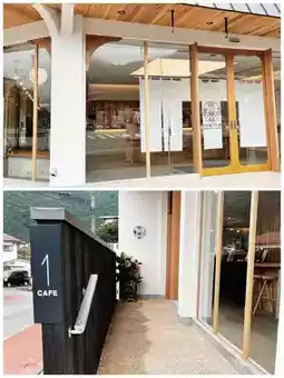 There are two entrances: the souvenir area with the noren curtain and the cafe on the left side of the front.