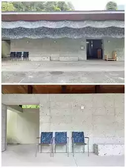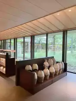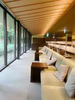 There were many Tochigi folk crafts on display, including a sofa overlooking the courtyard and small Mashiko ware plates.