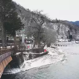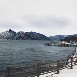 Lake Chuzenji is a freshwater lake in Nikko National Park in Japan. It is a famous tourist attraction that anyone who comes to Japan should not miss. In winter, the view behind is beautiful with mountains covered in snow. The water in the lake is quite clear.