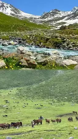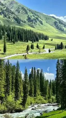 The Munket Ancient Trail is located in Xinjiang and is a mysterious and historic ancient trail. When you step on this land, you feel like you are in a fairyland. Surrounded by mountains, lush greenery, and babbling streams, it is like a painting carved by nature. (✿◡‿◡)