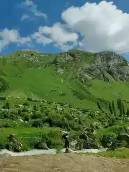 En route to the Snowland Hot Springs, the scenery unfolds like a living painting. Rolling mountains draped in emerald grasslands and dense pine forests form vibrant tableaus. Crystal rivers serpentine through valleys, their gentle murmur mingling with leaves rustling in the breeze—a symphony for the soul. Occasional white yurts dot the green meadows, stitching human warmth into nature's tapestry. This is where vision and spirit feast in perfect harmony.  #chinatravel#summervacay #100waysoftravel #travel #naturalwonders #thingstodo #familytravel