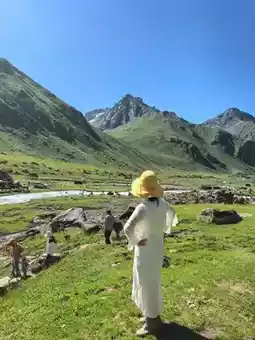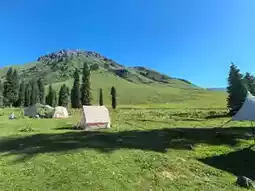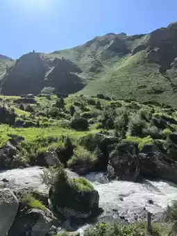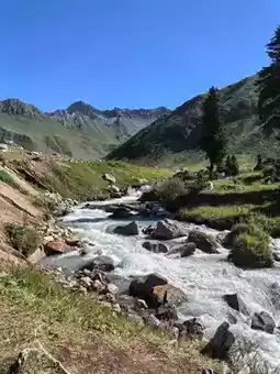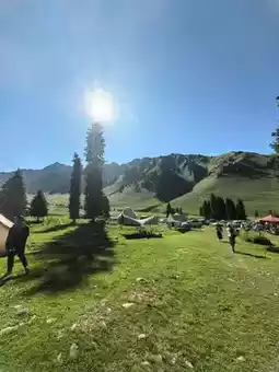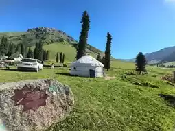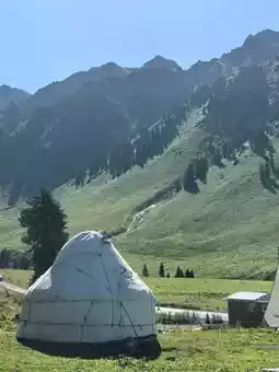 The beauty of the Mengket Ancient Trail lies in its status as a hidden passage through the Tianshan Mountains. Traveling or hiking through this canyon is like stepping into an ever-changing three-dimensional painting. Towering spruce forests, wildflowers dotting the meadows, secret green wilderness, meandering streams, and peculiar rock formations create a breathtaking scene. Yurts, tents ⛺, horses galloping across alpine grasslands, wading through streams, and adorable flocks of sheep 🐑 complete the picture. The winding and bumpy mountain roads, along with the vanishing phone signals, allow visitors to fully immerse themselves in the tranquil solitude of this sparsely populated, scenic paradise.