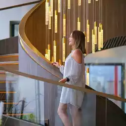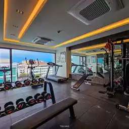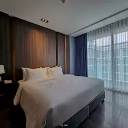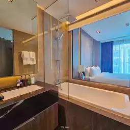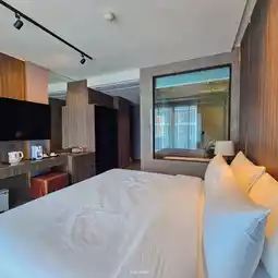 The room is a Deluxe room that comes with a balcony in front of the room. The bed is comfortable to sleep in. The room has a bathtub, Smart HDTV, capsule coffee maker and free mini bar. You can also breathe deeply with the air purifier in the bedroom. You will receive fresh and clean air throughout your stay.