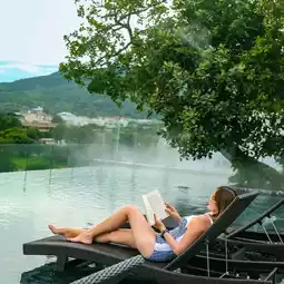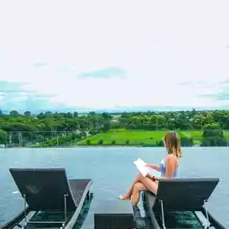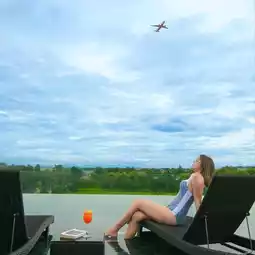 The hotel's swimming pool is on the rooftop next to Oasis Rooftop Bar & Restaurant. You can see the view of Chiang Mai city and Doi Suthep. It is also close to the airport. You can see planes taking off and landing from this angle.