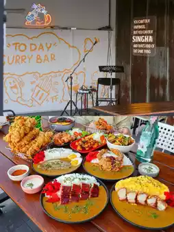 🍛✨ Today. Curry, a curry rice bar restaurant with a second-floor rooftop in Nimmanhaemin Soi 7, has almost celebrated its 1-year anniversary. They now have new menu items, including Japanese curry rice with new toppings on huge plates and new fried items, especially fried chicken skin skewers. Enjoy a crunchy bite with your favorite drinks. 🍖 Japanese curry rice in a big plate at a good price with a lot of toppings to choose from, along with new toppings: "Crispy Pork and Egg Topping" served with 90-110g of crispy pork per plate, "Fried Soft-shell Crab Topping" using large crabs, and "Japanese Eel Topping" using good quality eel that is very smooth (or choose from stewed beef, Australian blade beef, shrimp donuts, dory fish, fried chicken, fried pork, etc.) Starting at 119.- per plate. 🍢 Today's fried chicken skin skewers served with sweet and salty sauce. Dip with Mala chili, crispy outside, juicy inside. Now on promotion, 19.- per stick (from normal 3 sticks for 89.-). Along with other food menus that have been added such as 🍛 Eel and egg on rice, new toppings as requested or choose Japanese egg and chicken on rice, Tonkatsu pork, Australian blade beef, etc. 🐷 Highlight "Japanese stewed pork" uses pork belly stewed for almost 4 hours until the meat is tender, topped with soy boiled egg 🦑 Takoyaki, Japanese style fried squid tentacles, squeeze lemon, dip with sour cream sauce 🍗🍯 Fried chicken with honey sour cream sauce, uses soft chicken breast, fried crispy with honey sauce, sweet on the tongue, dipped in sour cream sauce 🍗🦐 Chicken Karaage with Shrimp Egg Sauce, Crispy and Soft, Creamy with Shrimp Egg Sauce🥦Fried Mixed Vegetables (Small) Eaten with Curry Rice to Cut the Fat.🍖🍺The original menu, Combo Set of fried items, from size M to XL, you can still order a single set. Including fried items such as fried chicken, fried shrimp donuts, cheese balls, French fries, fried onions, served with dipping sauce and curry soup. Order a large set to share with many people.📸The shop has 2 floors. You can sit on the ground floor in front of the bar, inside in a Korean-style neon zone, or go up the stairs to sit on the rooftop terrace on the 2nd floor. There is a corner to sit and enjoy the view. In the evening, there is live music.Today. Curry Bar📍 The shop is located on Nimman Road, Soi 7 (liquor store alley)⏰ Open 17.00-00.00 every day🛵 Delivery service is available on GrabFood, LINE MAN, Shopee FoodToday. Curry Bar & Beer: Nimman Soi 7