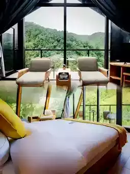 Facilities: The homestay is mainly romantic suspended wooden houses. The rooms are decorated with logs, tree trunks, and rattan branches, which are very retro. The bedding is soft and comfortable~ The second floor is a restaurant and the third floor is a coffee shop. There are children's playgrounds, multi-functional lounges, etc. that can meet various tourism needs such as team building, parent-child and couples~