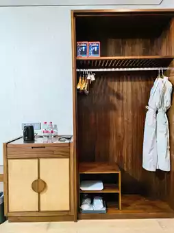 The room I stayed in this time is a standard twin room. The indoor floor is wooden, the wardrobe is wooden next to the door, and there is a mini living room and desk facing the door.
