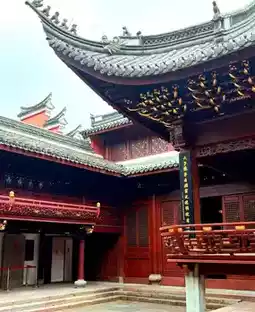 The eaves of the door of Ningbo Prefecture City God Temple adopt the "Ruyi bracket set", the arch is slanted at 45 degrees, and it is intertwined with the arch slanted next to it. The architectural specification form is a kind of central axis symmetrical multi-hall, "front hall and back bedroom" layout.