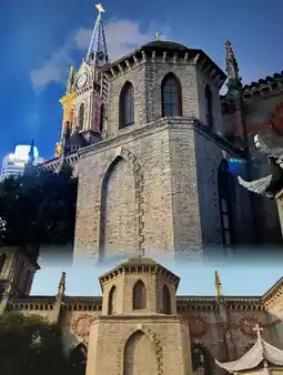 The church building adopts the form of a single bell tower and its plan is in the shape of a Latin cross. Its distinctive Gothic architectural style can be seen from the stained glass windows, arches and vaults. The internal structure has a pointed roof and stone brackets. The exterior is mainly made of blue bricks, with red bricks used for frames and lines, which proves that it also has Chinese characteristics. It has become an important example of the fusion of Chinese and Western architecture in the early period of existence...Jiangbei Catholic Church