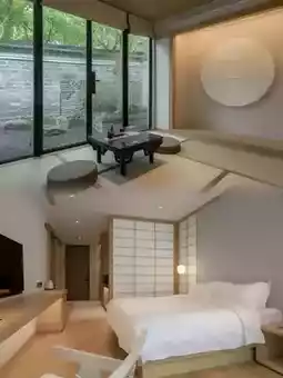 Within the vast space of the B&B, only 19 rooms were made, valuing 'quality' over 'quantity.' The rooms are mainly divided into Chinese and Japanese styles, with a pure white + natural wood color scheme. Most rooms come with their own courtyard, which, set against the surrounding green bricks, gray tiles, and white walls, seems even more tranquil.