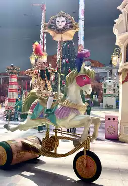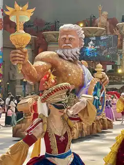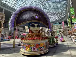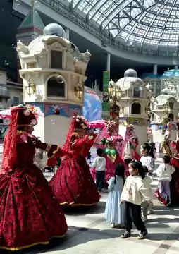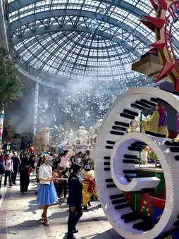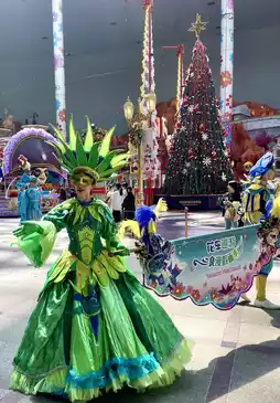 The Romon U-Park in Ningbo covers an area of 200,000 square meters, consisting of an indoor theme park with a height of 57 meters and the outdoor Legendary Island. There are many attractions available without the need for additional tickets. The attractions are concentrated, and the indoor ones are unaffected by the weather. The most unforgettable moment is the afternoon parade, which takes place in the central indoor auditorium. Amidst the exciting music, colorful floats and actors dressed as various characters appear, marking the start of a feast full of fantasy and joy. During the parade, colorful ribbons and bubbles soar into the air, bringing the atmosphere to a climax. In the final phase, the performers stop to interact with the audience and dance together. The staff on-site explained that the parade is composed of over a hundred performers, primarily foreigners. When we visited, the parade started at 2 pm and lasted for 40 minutes. Visitors can arrange their time according to the amusement park's schedule to avoid missing the parade.
