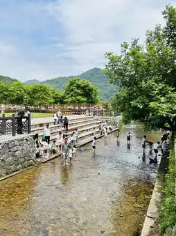 ✅ There is a stream at Jiulong Source Square where you can play in the water. Jiulong Source Mountain is not high, with a pleasant journey of climbing and wading through waterfalls and streams, and fresh air.