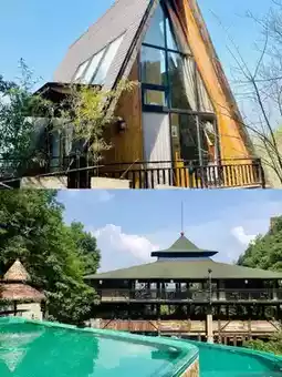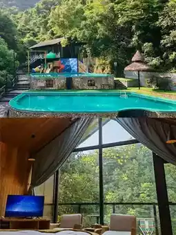 The resort is built on the hillside of a mountain hollow, and upon arrival, the view opens up dramatically, with layered mountains and scattered treehouses, away from the hustle and bustle, stars hidden in the wilderness and forests, breathing the fresh air of the mountains, listening to the birds and cicadas, and instantly feeling relaxed and happy