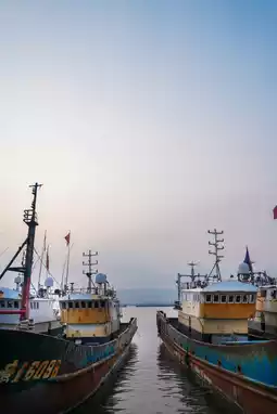 At this moment, during the fishing ban, the docks⛵️ are lined with a row of ocean-going fishing boats🚢