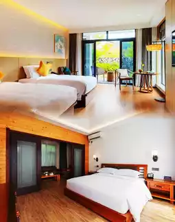 The hotel offers 188 high-quality rooms of various styles, suitable for different families and groups (courtyard rooms, duplex rooms, view rooms, hillside hot spring villas, children's rooms, elderly rooms, pet rooms)!