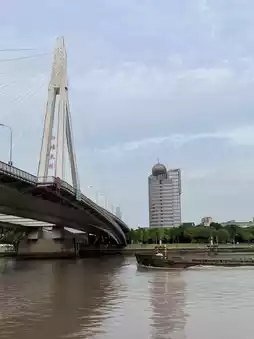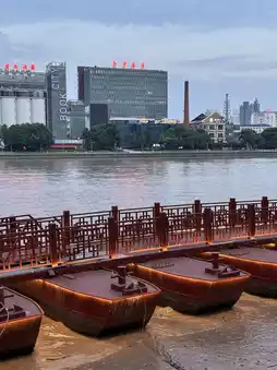 The Bund Bridge, located above the Yong River, was originally named 'Jingjia Road Cross-Yong River Bridge'. It serves as a crossing passage connecting Jiangbei District and Yinzhou District.