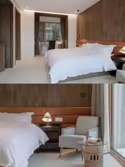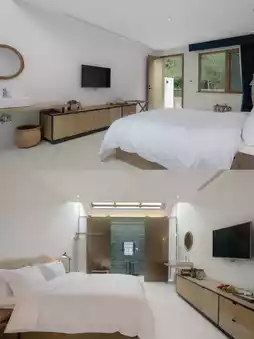 The supporting facilities are complete to meet the needs of different groups of people🎉. There are restaurants, cafes, children's play areas, yoga rooms, swimming pools, hot spring baths and audio-visual rooms. Each room has a terrace. When you open the curtains in the morning, you can see the green mountain view, as if you are in the embrace of nature🌿. We also provide an open-air hot spring experience, which is very private and requires reservation in advance😉.