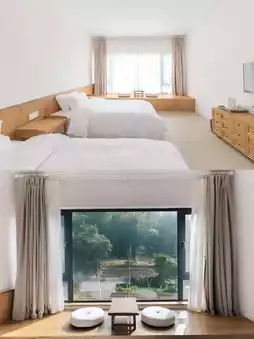 It is located in Maoao Village, Jiangbei District, Ningbo City, only a ten-minute drive from the ancient county town of Cicheng. Maoao Village is a beautiful ecological village, peaceful and pristine, where time seems to have stopped. The homestay is located by the mountains and water, facing the town. Several white buildings form a small courtyard full of Japanese Zen. There are not only natural scenery around, but also attractions such as Cicheng Ancient County and Maoli Farm are within easy reach👀.