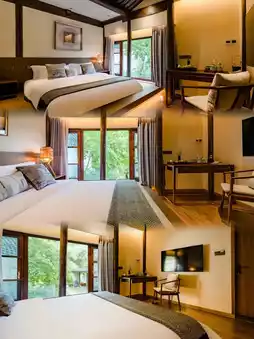 Each room has a different style and features, and I like the facilities: floor heating, air conditioning, and hot water are all good. We live in two giant screen projections. Outside the room window is a bamboo forest and a small garden. When you wake up in the morning, your eyes are full of green, and the fresh air is oncoming, making you feel particularly comfortable.