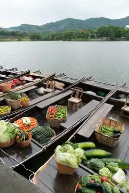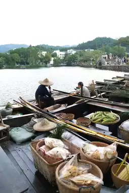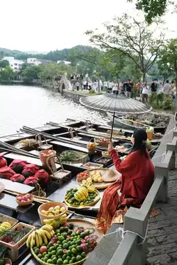 The scenery of Cihu is vaguely picturesque. The Wupeng boat on Cihu is full of red and green fruits and vegetables. The wine brewed by the old man is full of the harvest of the northern Jiangbei, bringing joy to every tourist.