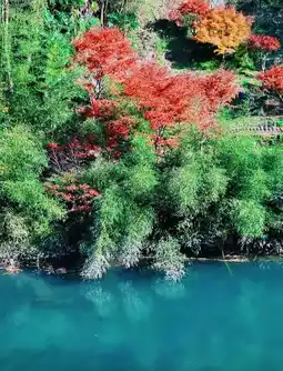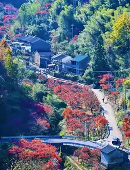 ✅Bankeng and Jiaoquqiu fall foliage. A small mountain village surrounded by red maples, with houses built on the mountainside, floating in a sea of red. For fall foliage viewing, it's recommended to view both up close and from a distance. From the middle of the ancient path to Meishukong, look back at Jiaoquqiu, and the ancient village amidst the red and green is as beautiful as an oil painting.