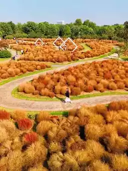Large areas of Kochia scoparia bring a strong visual impact, which is very suitable for drones. The panoramic view is the most beautiful~ Golden pine, ginkgo, bald redwood forest... and various beautiful small flowers, the whole person is healed by nature☺️