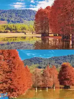Due to the angle of sunlight🔅, the colors of several adjacent redwood trees will show a gradient effect, and the Metasequoia will become a "rainbow tree"🌈 with bright colors and a particularly beautiful picture. This reservoir is only a 10-minute drive from the Siming Lake Metasequoia Wetland. There is a whole row of Metasequoia forests beside the reservoir. You can see the reflection of Metasequoia on the lake on the opposite bank. There are relatively few people, so it is suitable for quietly appreciating the redwoods~🌲