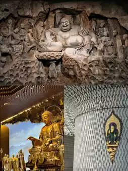 •Xumi Mountain has 9 floors, each of which is dedicated to a Maitreya statue. You can visit along the Sutra Path or take the elevator to the top.
