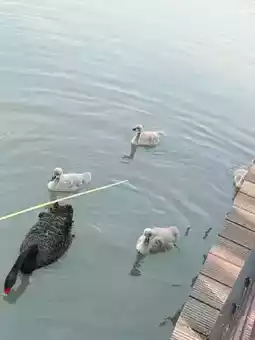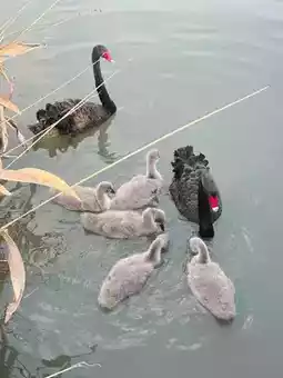 Another favorite is the family of black swans. Their ugly ducklings are so cute, with gray fluff, completely different from their parents. They are so fluffy and small, so cute.
