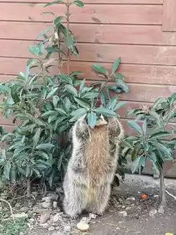 I love the raccoons inside, the four little cuties are so fat, and they are eating all the time. Don't be fooled by their fatness, they are very agile when climbing trees, and they can even sleep on the branches.