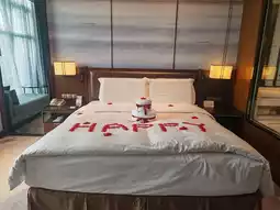 I booked an executive king room for this stay. I told the hotel that I was staying for my birthday, and they gave me a towel cake and made the bed, which was a thoughtful gesture.