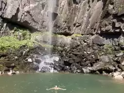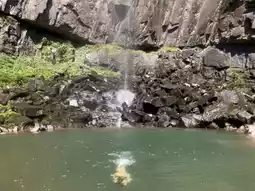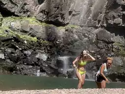 In front of the waterfall there is a small sand area where we were able to sit, tan, enjoy the views, and have a picnic 😋 In case you plan on doing the same, make sure to bring a trash bag with you and clean up when you’re done! Leave the place as you found it.
