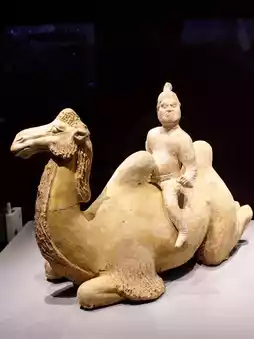 ✅Painted Figurine of a Foreigner Riding a Bactrian Camel and Reclining Bactrian Camel