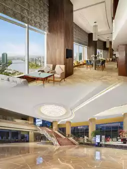 📌Hotel Environment: The hotel is located at the confluence of three rivers, offering excellent city views. The high-ceiling lobby design is magnificent, with artwork throughout adding cultural flair. Rooms feature a new Chinese style with floor-to-ceiling windows providing unobstructed river views.
