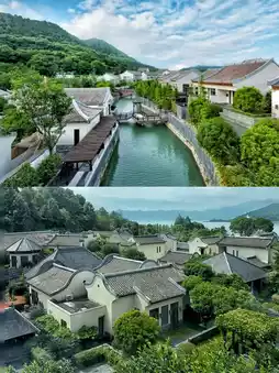 The hotel rooms feature single-story townhouse designs, with white walls and blue-gray tiles, lush bamboo groves outside the doors, and Chinese-style lighting—every detail exudes rich traditional Chinese aesthetics. Each room is meticulously designed to ensure comfort while offering guests the rare privilege of breathtaking natural views through the windows.