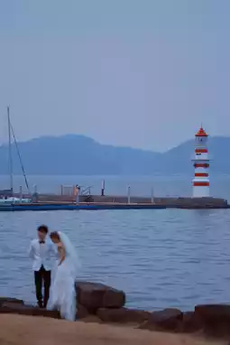 The red-and-white lighthouse and the lonely tree by Dongqian Lake are must-visit spots.