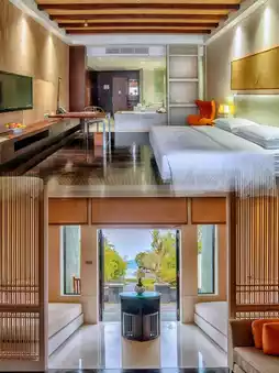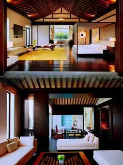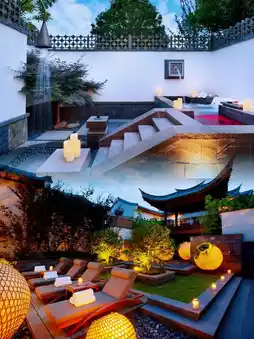 The Courtyard Villa Spa, hidden within the gardens, features Yuehu Spa, comprising twelve standalone luxury spa villas. Each villa boasts state-of-the-art massage treatment rooms, foot massage areas, steam showers, saunas, and elegant private gardens with outdoor lounges, Jacuzzis, and showers.