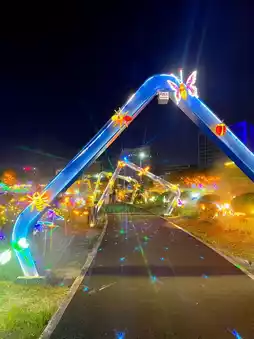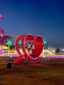 Acres of blooming flowers + special effect lights create a fairy-tale countryside