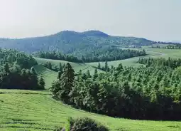 As summer arrives, Fuquan Mountain by Dongqian Lake presents rolling tea fields, fresh air, and stunning landscapes, perfectly embodying the essence of "Little Altay." The lush greenery stretches to the horizon, as if stepping into the fairy-tale world of *The Wizard of Oz*.