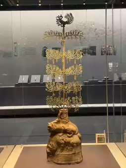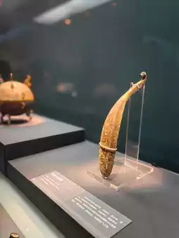 • The exhibition also includes 39 artifacts from the Jinsha Site Museum in Chengdu, such as exquisitely crafted gold foil decorations, copper wall plaques with collars, jade zhangs, and practical weapons from the Spring and Autumn to the Warring States periods.