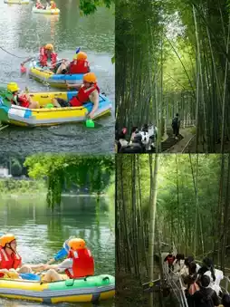 · When you ride a kayak swiftly along the winding slide, you are surrounded by endless bamboo forests, as if flying on the bamboo tips.
