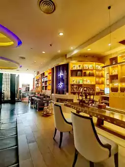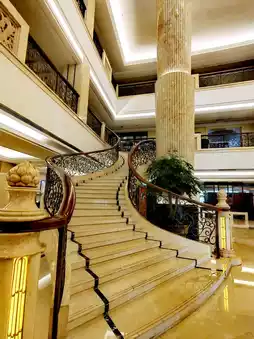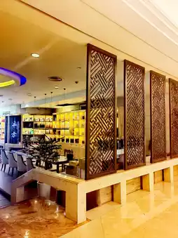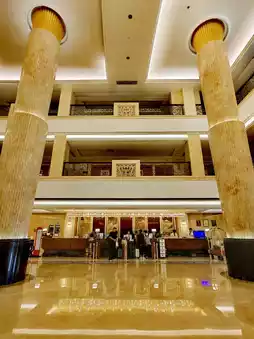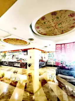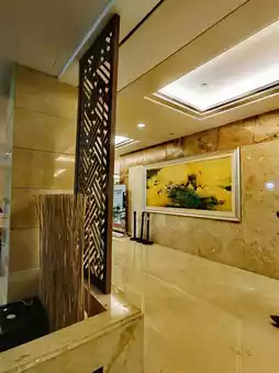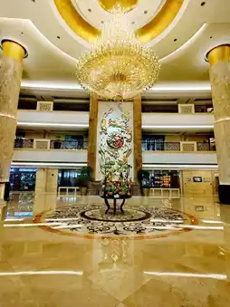 The hotel's architectural appearance is simple and unadorned, but as soon as you step into the spacious and bright lobby, a sense of grandeur overwhelms you. The lobby is three stories high and integrates modern and traditional elements in its design. Exquisite chandeliers, three-dimensional decorative paintings with oriental characteristics, and marble columns all contribute to creating a warm, elegant, and distinguished atmosphere.