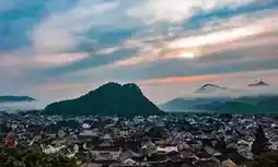 Lushan Mountain: Resembling a lying deer, it is regarded as an auspicious sacred mountain, offering a panoramic view of the ancient town from the top.🌄