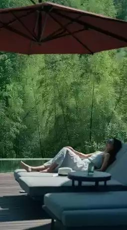 With constant water temperature, you can lie by the edge of the infinity pool and gaze at the bamboo sea and cloud waves