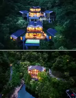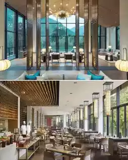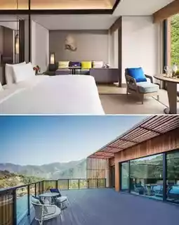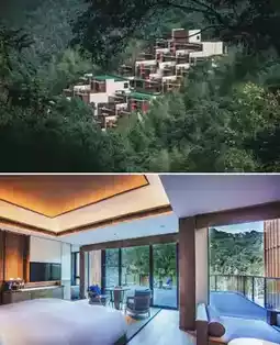 As the first Chedi hotel in China, it was co-created by the founder of Aman, drawing design inspiration from three natural elements: bamboo forests, hot springs, and valleys. Embracing a "light intervention" philosophy, the architecture blends seamlessly into nature, preserving the original landscape to the fullest. Details like sloped bamboo roofs, wooden lattice screens, and bamboo pendant lights artfully merge traditional Eastern aesthetics with modern minimalism.
