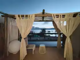 During my trip to Yunnan, I stayed at the picturesque LuGuhu Anxia Mountain Resort Hotel, located next to Xiaoyuba in Daluoshui Village. The hotel boasts a pure white aesthetic reminiscent of Santorini, Greece, making it perfect for taking stunning photos from any angle. Every room offers a lake view, which is absolutely breathtaking!