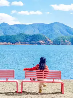 Goddess Bay, surrounded by mountains on three sides, facing the lake on one side, has a small beach feeling, you can watch the sunset