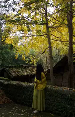 3️⃣ Bamboo shadows peeking at the ancient tree: Shoot through the bamboo gaps in the courtyard to capture the golden tree crown behind the horse-head wall, creating a rich layered effect.