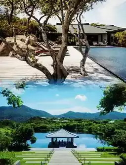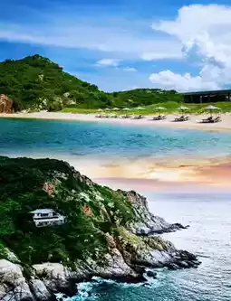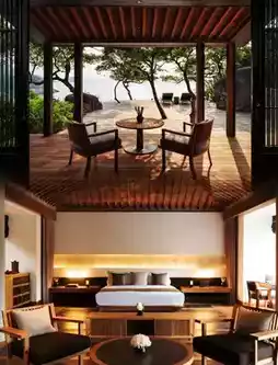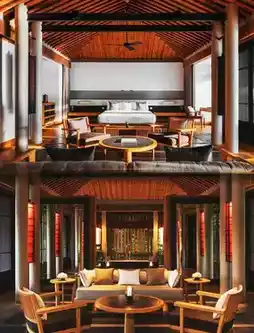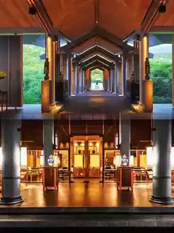 The main building of the hotel is built in layers, and the scene is as unique as a Suzhou garden, with a strong Southeast Asian flavor. There are many cliffs surrounding a valley that is rarely disturbed by people. In the valley, there is a green lotus pond and a pebble beach, which is peaceful and far away.